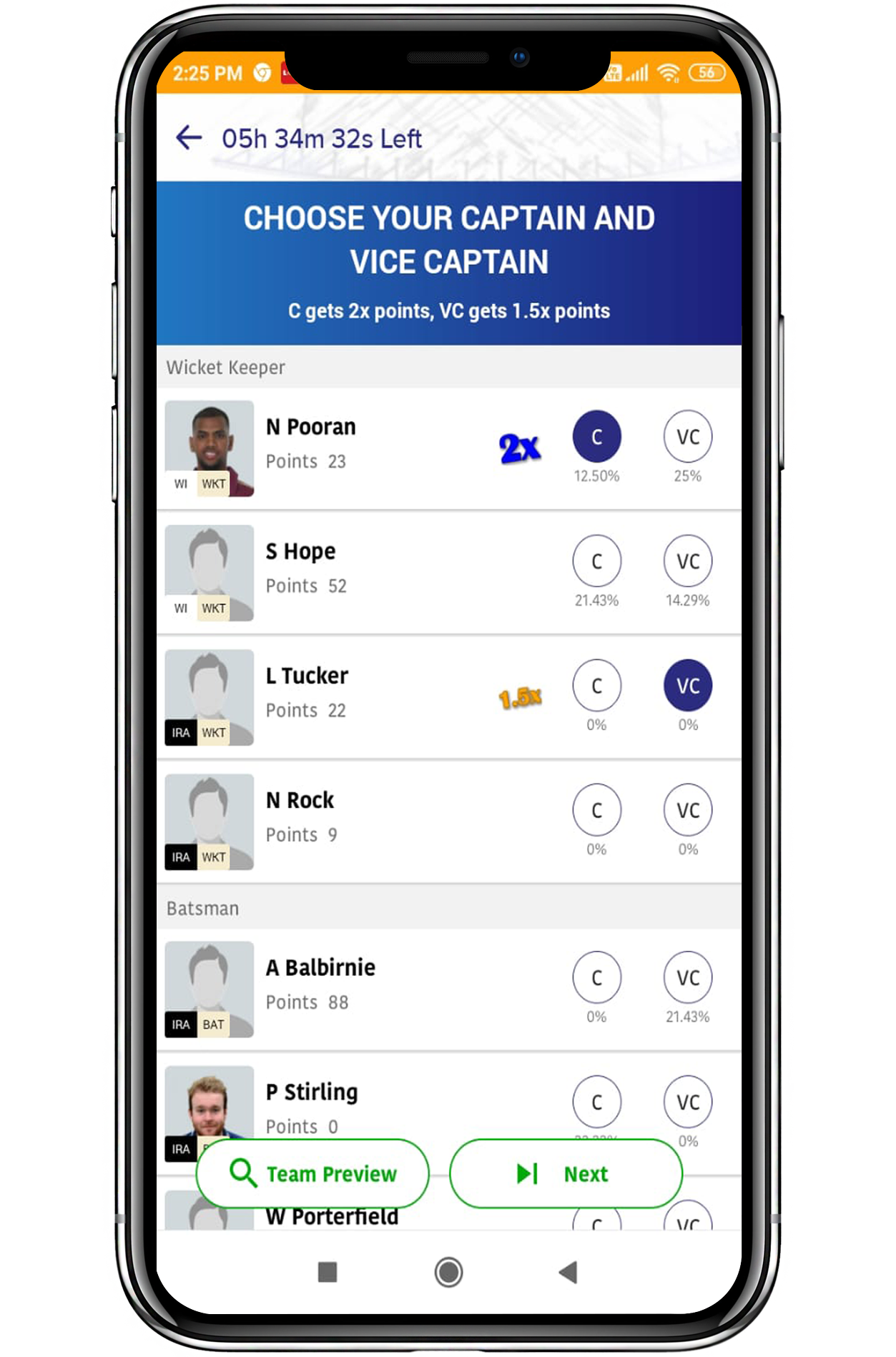 5.After picking 11 players, select captain and vice-captain for your fantasy team.
